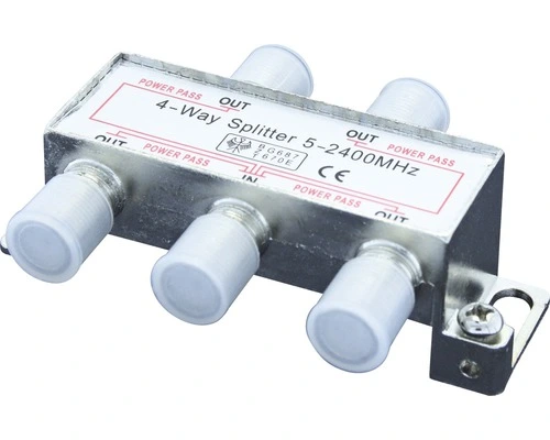 Coax splitter 4-voudig voor F-connectoren.