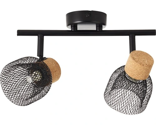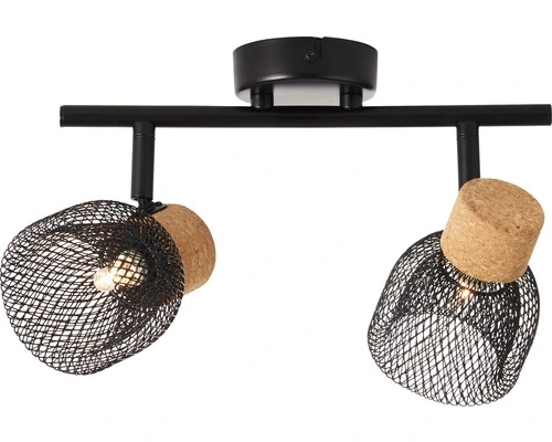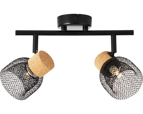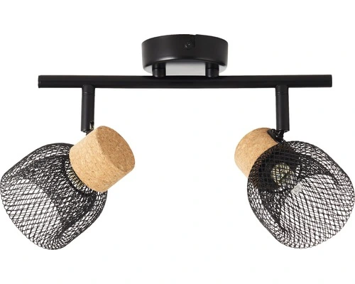 BRILLIANT Opbouwspot Flaka 2-lichts Kurk/metaal Zwart