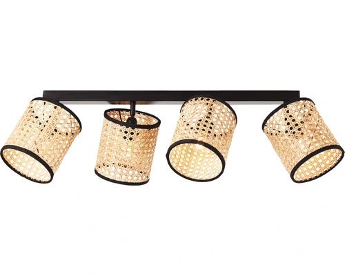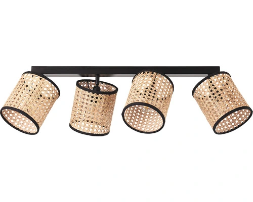 BRILLIANT Plafondspot Wiley 4-lichts Metaal-rotan Zwart-bruin