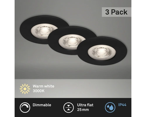 BRILONER LED Inbouwspot Set 7047 Ø 90 Mm Zwart, 3 Stuks