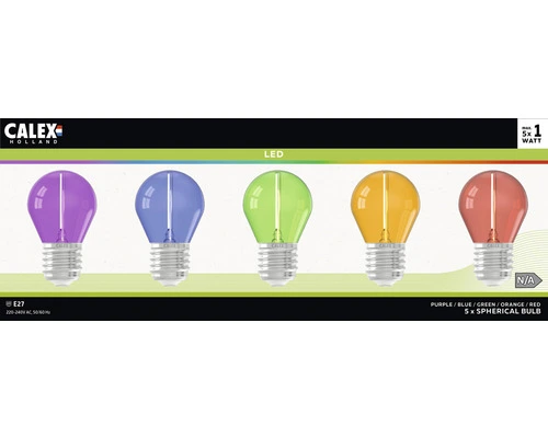 CALEX LED-lamp E27/0,5W Diverse Kleuren, 5 Stuks