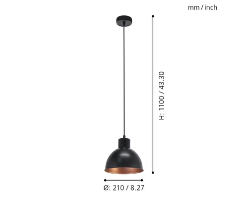 EGLO Hanglamp Truro 1 Ø 21 Cm Zwart/koper
