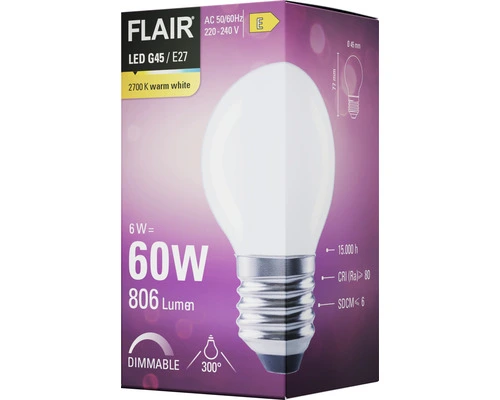FLAIR LED Lamp E27/6W G45 Warmwit Mat