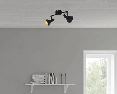 FLAIR Opbouwspot Alrakis 2-lichts Zwart-goud