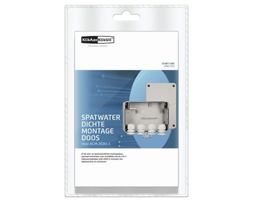 IP56 stof- en spatwaterdichte montagedoos, speciaal ontworpen voor installatie van de drievoudige inbouwschakelaar ACM-3500-3. Inclusief kabelwartels en schroeven.