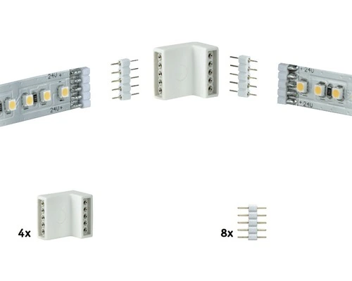 Het MaxLED-systeem kan met behulp van verbindingen perfect worden vertakt of aangepast aan bijzonderheden in het vertrek, zoals hoeken of verhogingen. Dankzij de hoekverbindingen kunt u de strips langs binnen- en buitenhoeken bevestigen.
